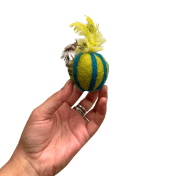 Bring out your cat’s inner hunter with our Hari Bhari Pankh Ball! Designed in bright colors with a feather accent, it’s purrfect for cats who dream of hunting pigeons all day. Hand-felted using non-toxic, hypoallergenic, and anti-microbial materials, it ensures safe and exciting play. Infused with premium catnip, this toy keeps your feline engaged, active, and entertained.